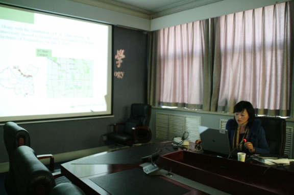 国际交流合作处副处长汪滢向来访客人介绍我校基本情况