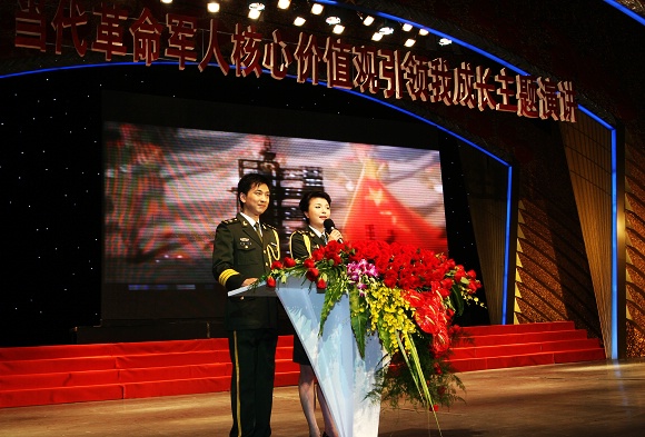 2009年5月6日下午三点,我校在解放军总参通信部礼堂举行“当代革命军人核心价值观引领我成长”主题演讲活动,此次活动是解放军总政治部在承担部队后备军官培养任务的地方高校中,大力开展培育当代革命军人核心价值观思想政治建设重要基础工程的组成部分,是落实胡锦涛主席关于“忠诚于党,热爱人民,报效国家,献身使命,崇尚荣誉”的当代革命军人核心价值观论述的重要举措。