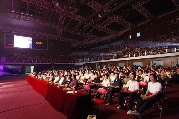 2009年6月18日周四晚19:00,我校体育文化馆灯火通明、热闹非凡。由校团委、校研究生会、校学生会主办的“感谢 青春”毕业晚会暨第五届“我爱我师”颁奖典礼在这里隆重举行,晚会得到了体育部和后勤集团的大力支持。