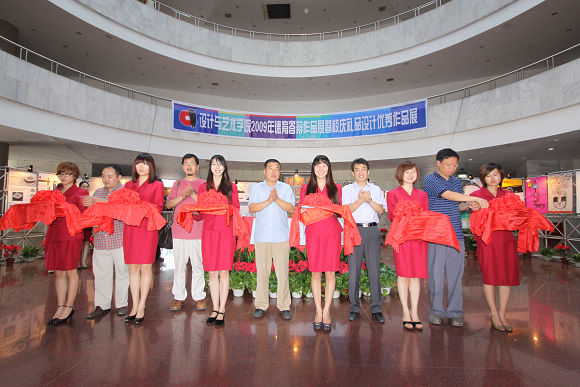 当日上午,设计与艺术学院2009年德育答辩作品展暨校庆礼品设计优秀作品展剪彩仪式在中教大厅如期进行。副校长李和章、学生工作处副处长杨海、院党委书记杨海滨、副院长杨建明为展览剪彩,设计与艺术学院党委副书记、副院长丛磊老师主持了剪彩仪式。剪彩仪式结束后,校领导和参加剪彩的师生一起饶有兴趣地参观了展览。