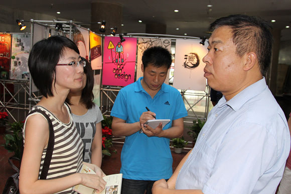 2009年6月24日,由设计与艺术学院发起并主办的德育答辩展板作品展暨校庆礼品设计优秀作品展在我校中关村校区中心教学楼一层大厅隆重开幕。校党委书记郭大成、校长胡海岩、党委副书记副校长杨宾、副校长赵长禄、副校长李和章等校领导在设计与艺术学院党委书记杨海滨、副院长杨建明、党委副书记副院长丛磊老师的陪同下参观了展览,校领导一边听我院师生讲解,一边浏览各优秀作品展板,并就有关学术问题、设计创新点与我院师生进行了交流。