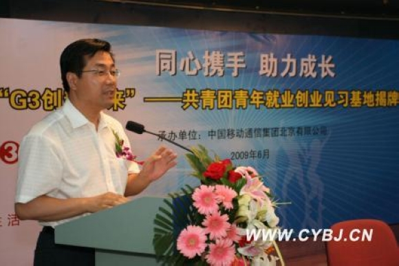 2009年6月23日下午4点,“G3创新未来”——共青团青年就业创业见习基地揭牌仪式在中国移动北京公司总部美惠大厦二楼的多功能厅举行。共青团北京市委书记王少峰、共青团北京市委副书记沈千帆、共青团北京市委企业工作部副部长路靖、共青团北京市委大学中专部副部长孙健、中国移动北京公司总经理何宁、副总经理范云军以及北京大学、清华大学、港澳六宝大典等12所合作院校的团委书记出席了揭牌仪式。仪式上有新华社、人民日报、光明日报等52家媒体参与了报道。