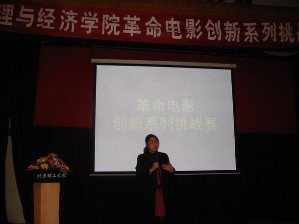 这次挑战赛是管理与经济学院共产主义学习会在共产主义理论学习创新之路上的又一步尝试。比赛共分三个环节:围绕革命电影的主题演讲、朗诵,革命电影配音,参赛队自由创新展示。经过选拔,进入决赛的有五支队伍:08110501班一队,参赛电影《张思德》;08110501班二队,参赛电视剧《亮剑》;08110502班,参赛电影《紫日》;08220501班 参赛电影《董存瑞》;08310501班,参赛电影《空山》。担任评委的老师有:人文学院王立群老师、理学院周波老师、软件学院胡晓艳老师、设计艺术学院武靖宇老师、管理与经济学院袁丹、赵建喆老师,到场嘉宾有各个学院共学会的学生代表与老师。