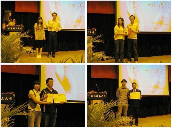 在场嘉宾及上届获奖同学为获奖者颁发奖杯、获奖证书及奖品成为晚会的高潮。